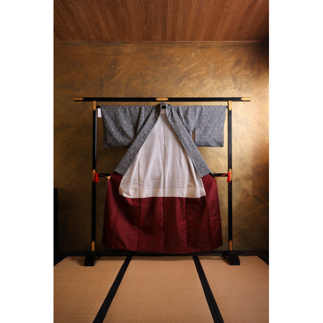 Luumunpunainen haori bambunlehdillä #136