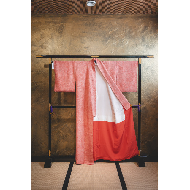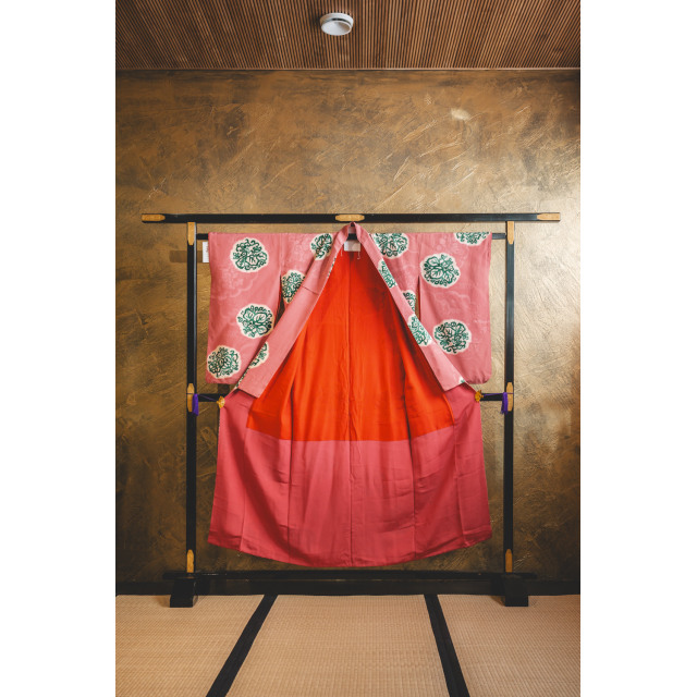 Pinkki antiikkikimono vihreillä ornamenteilla #548