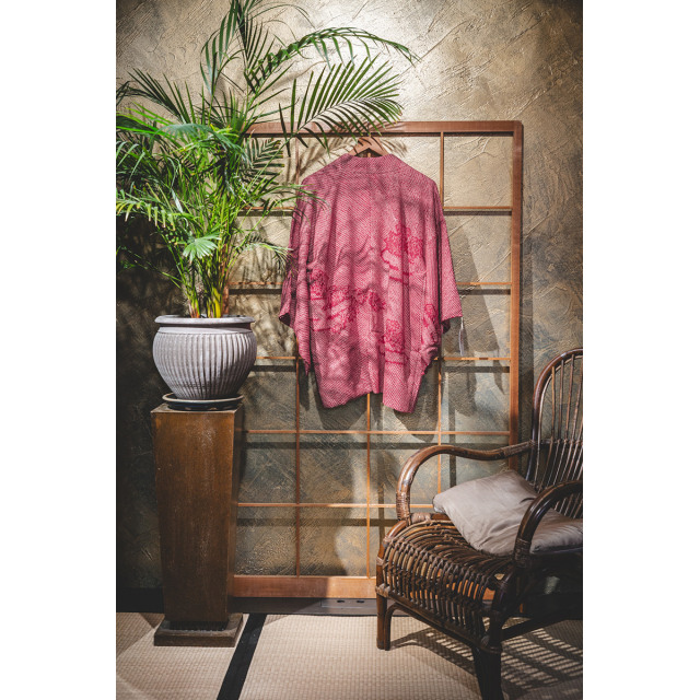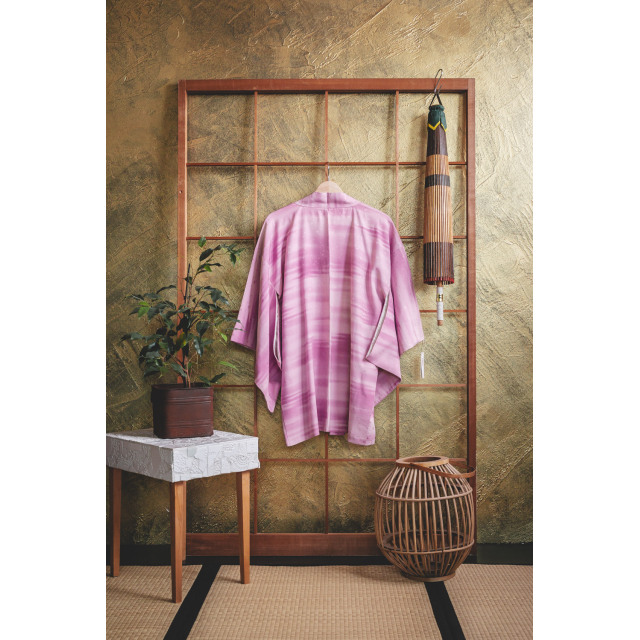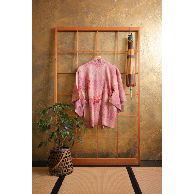 Vadelmainen solmuvärjätty haori bambukuviolla #155