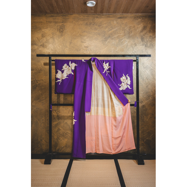 Violetti kimono suurilla valkoisilla kukilla #524