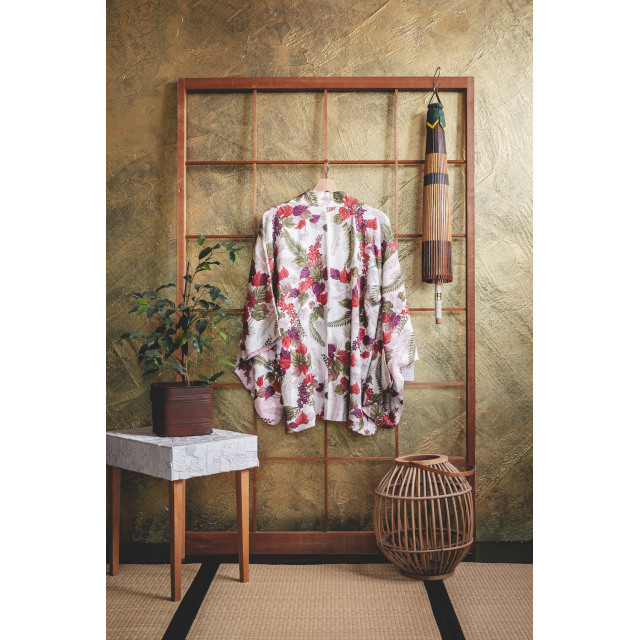 Valkoinen haori värikkäillä kasveilla #186