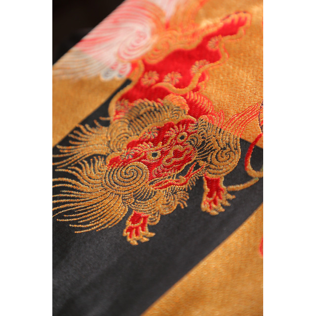 Puna-musta nagoya obi leikkivillä koiraleijonilla #626