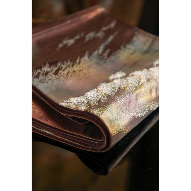 Kultainen fukuro-obi hopeisilla puilla #607
