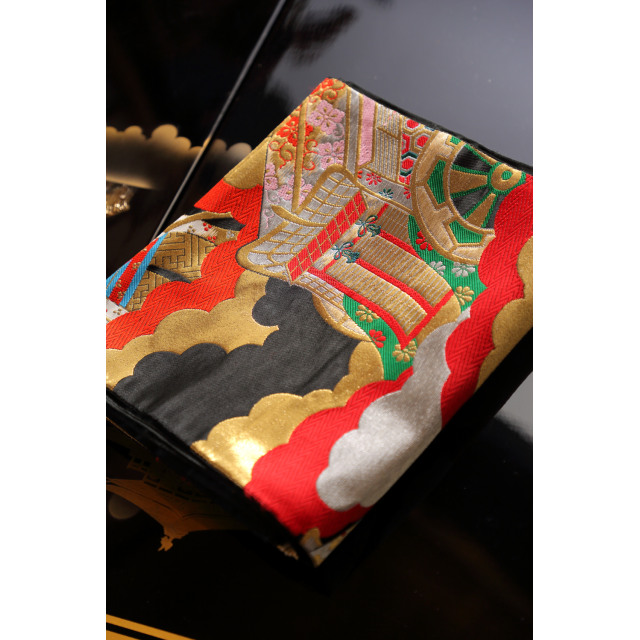 Musta nagoya obi kukkakuviolla #623