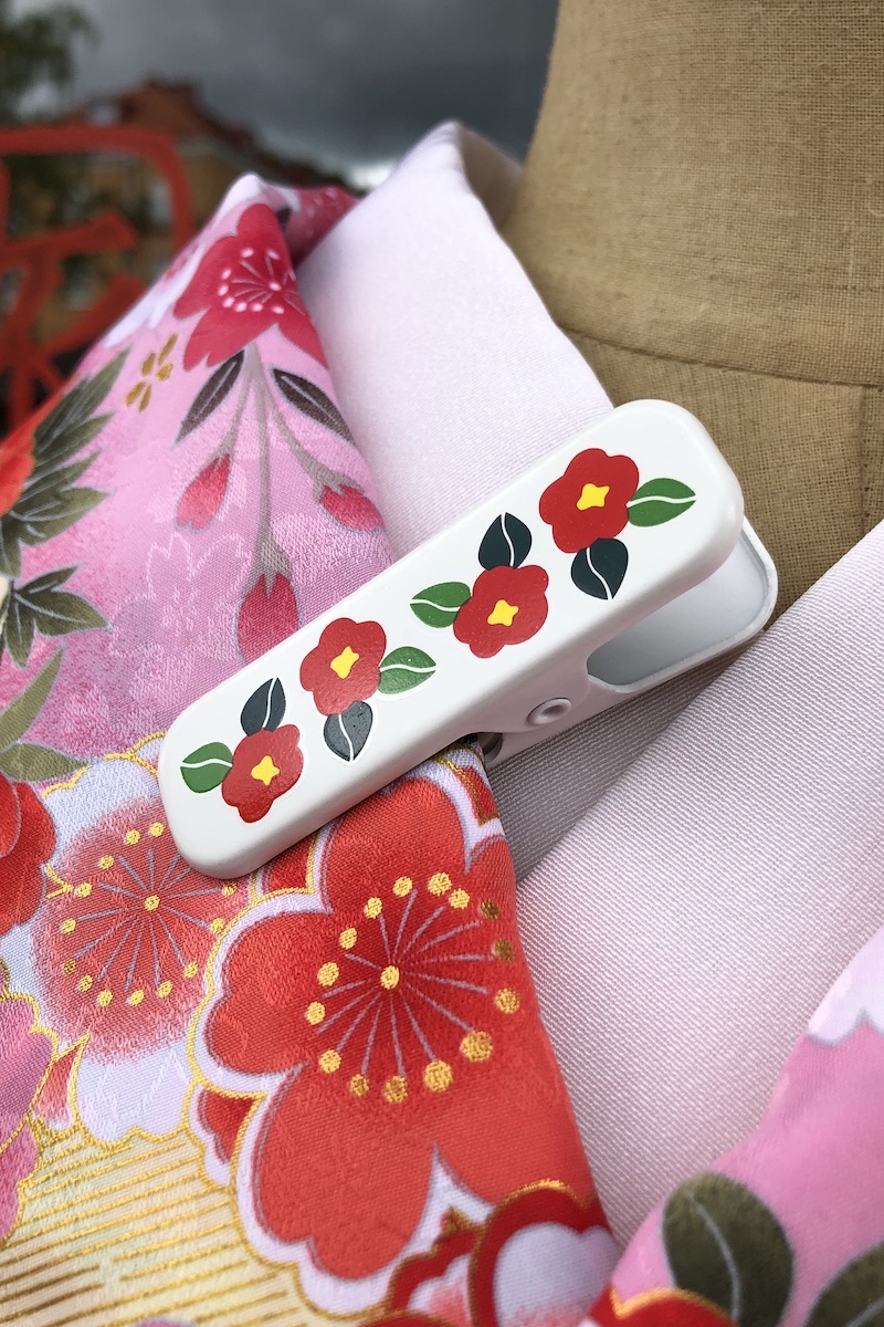 Obi clip on vahva metallinen klipsi, jota käytetään kimonon pukemisessa. Tässä klipsissä on kaunis kameliankukkakuviointi. Kuvion väri saattaa vaihdella.