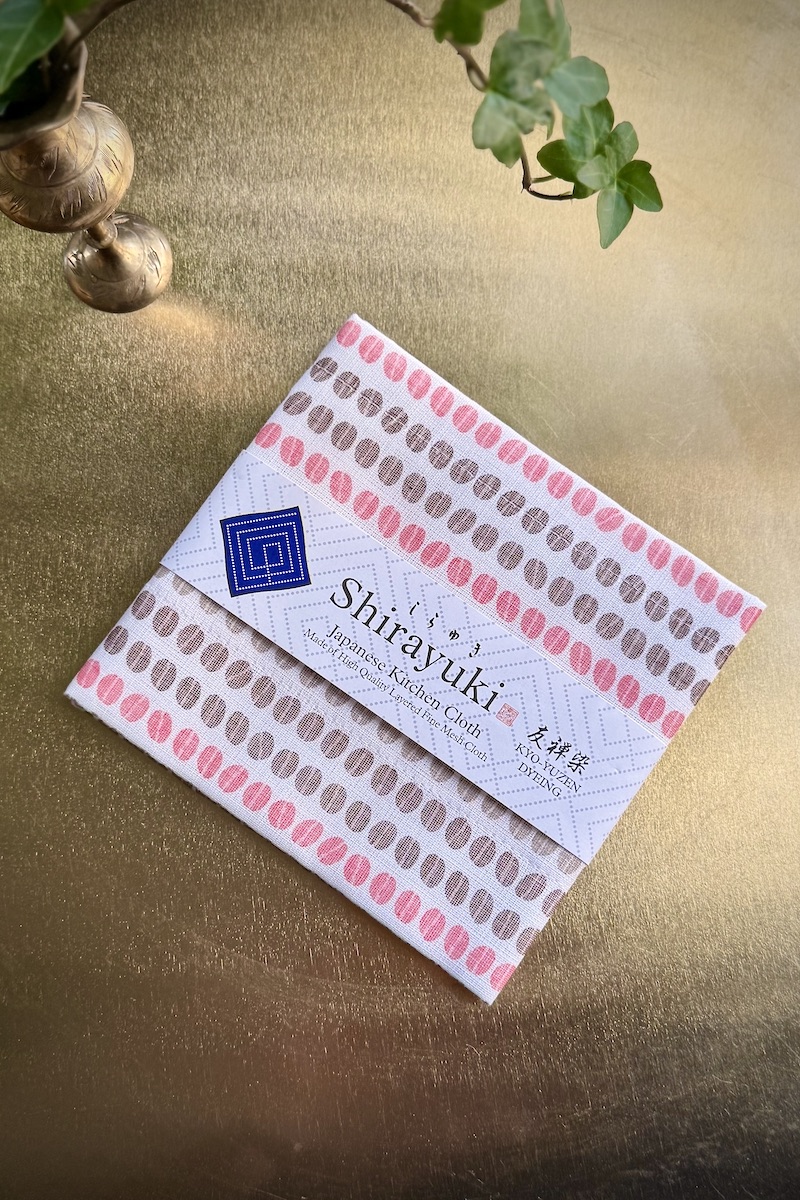 Mitat 30x40cm. Materiaali 85% viskoosia, 15% puuvillaa. Valmistusmaa Japani. Kahvipapukuvio.
