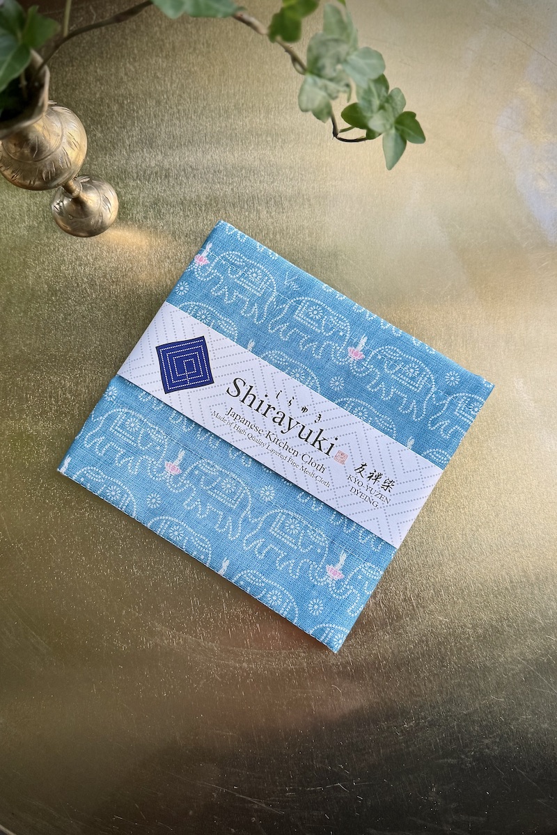 Mitat 30x40cm. Materiaali 85% viskoosia, 15% puuvillaa. Valmistusmaa Japani. Norsukuvio.