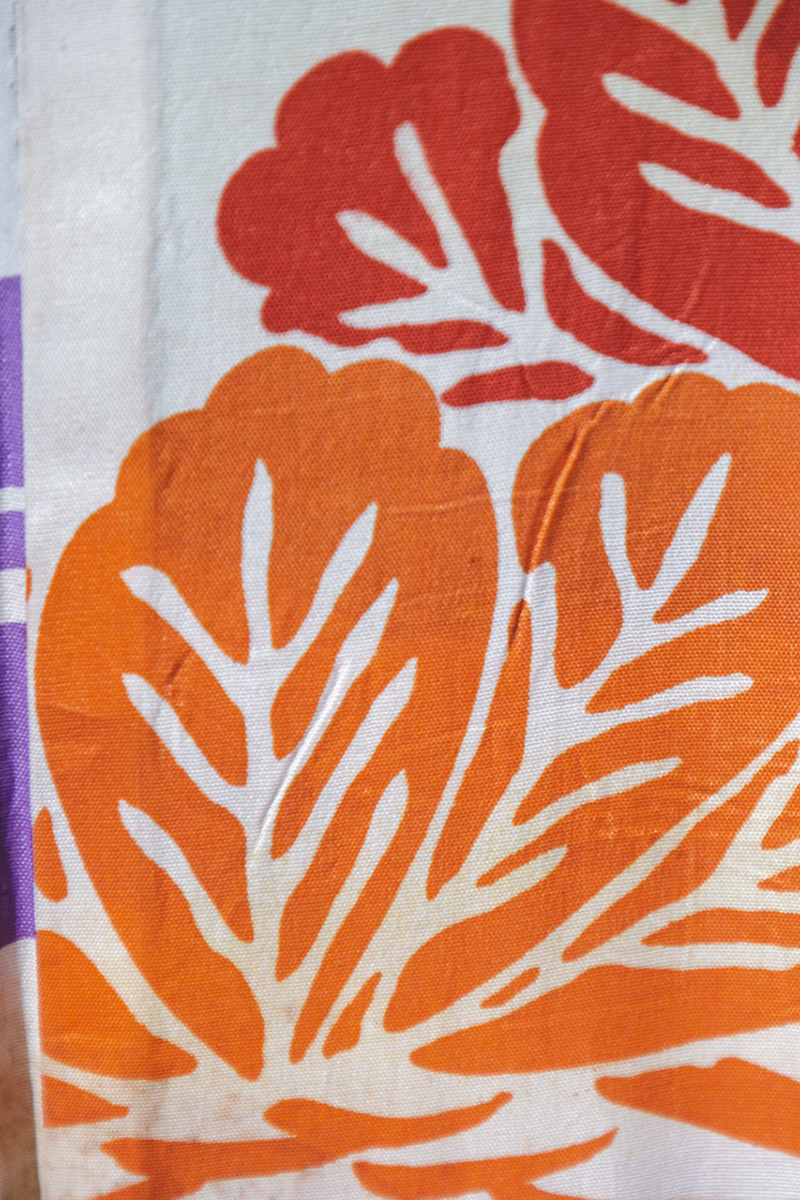 Tabin kuntoluokka: 3. Haorin vuorikankaassa on kellertävää patinoitumista, joka ei näy käytettäessä ulospäin. Haorin päällikankaassa on oikean hartian kohdalla pari pientä reikää. Haori on ikäänsä nähden erittäin hyvässä kunnossa.