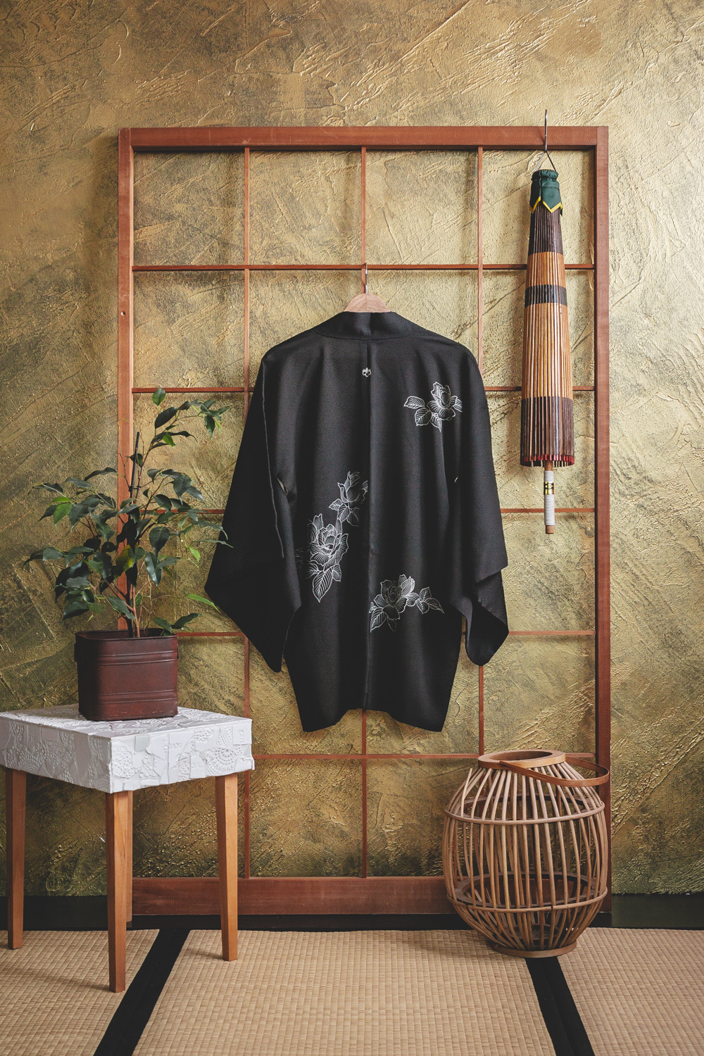 Musta haori ruusukuviolla #189