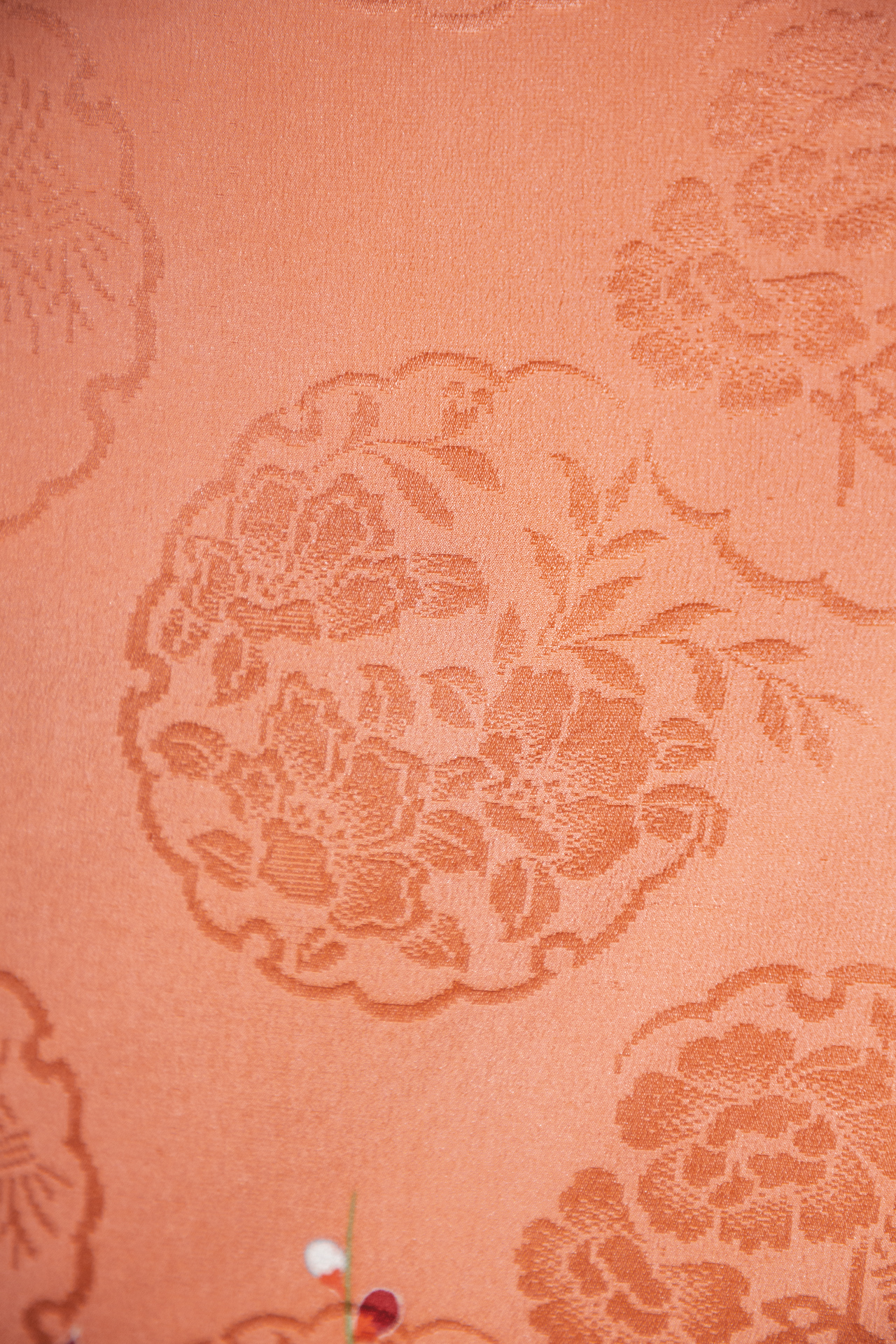 Roosanvärinen antiikkihaori näyttävällä kukkakuviolla #156