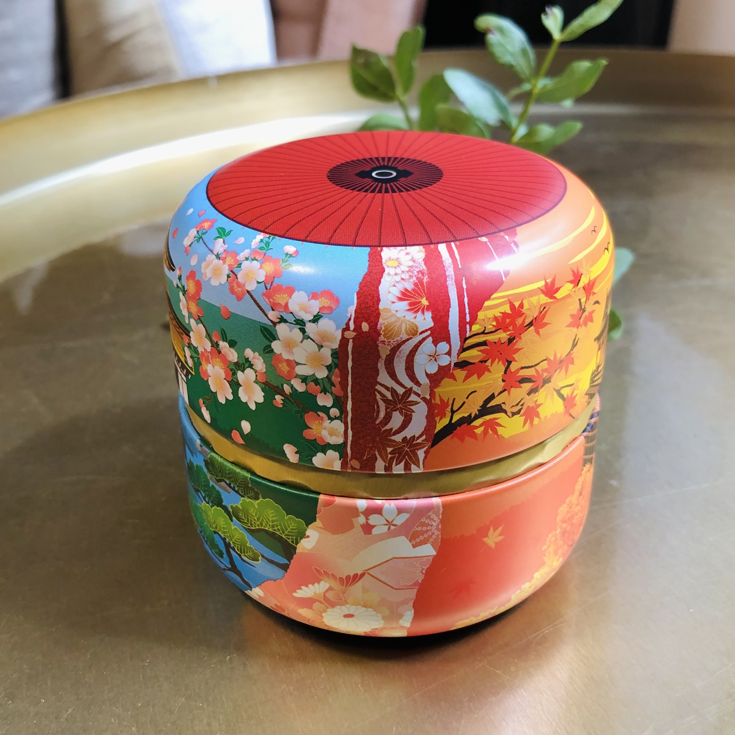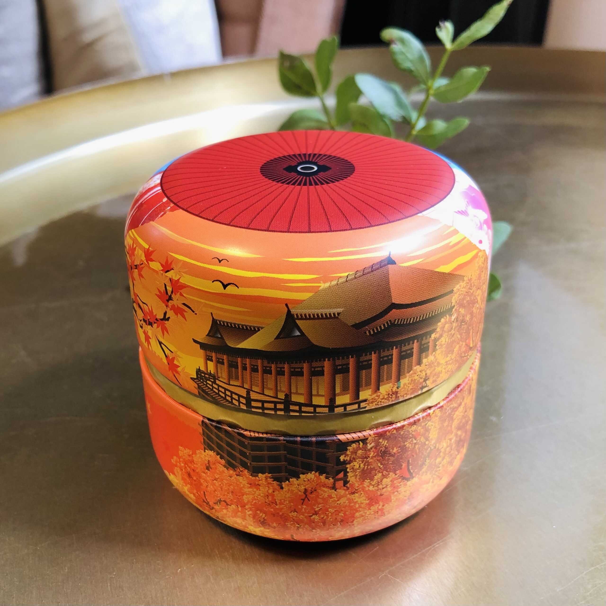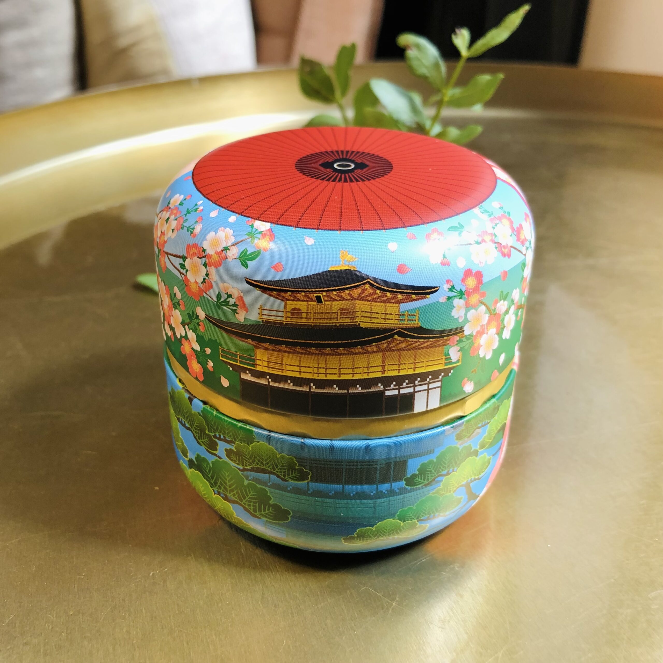Kiotossa oleva kultainen paviljonki Kinkakuji, joka on kuvattu purkkiin sekä kevät- että syysmaisemassa.