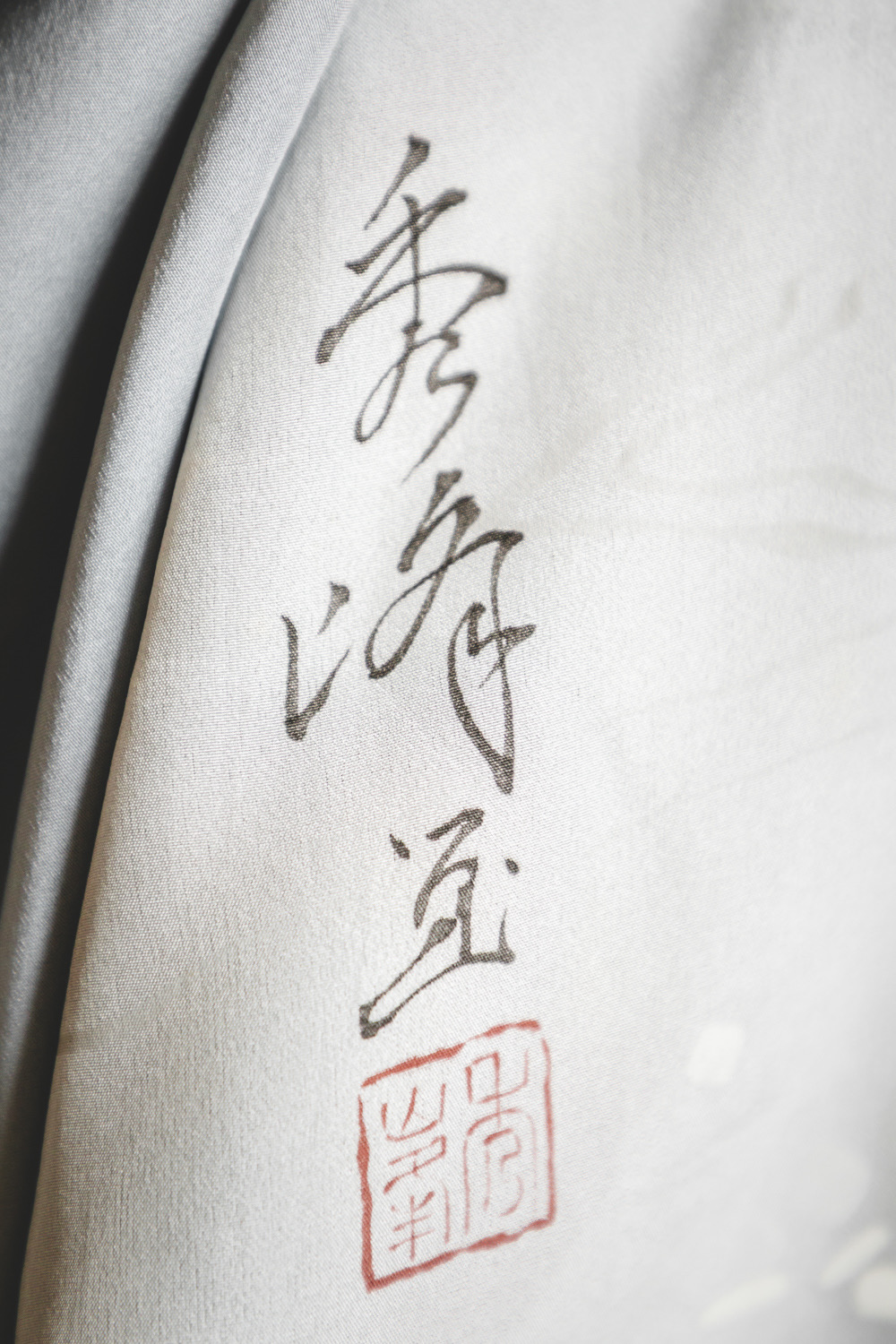 Huomaathan, että haori on tarkoitettu jäämään edestä hieman auki. Haoria voi käyttää myös kääntötakkina, jolloin sisävuorin kuvioitu kangas tulee näkyviin. Voimme lisätä haoriin solmimisnauhat (8€), joilla haorin saa sidottua edestä väljästi.