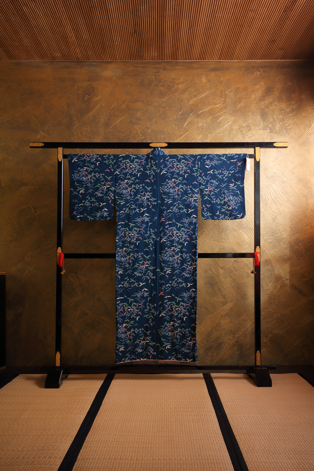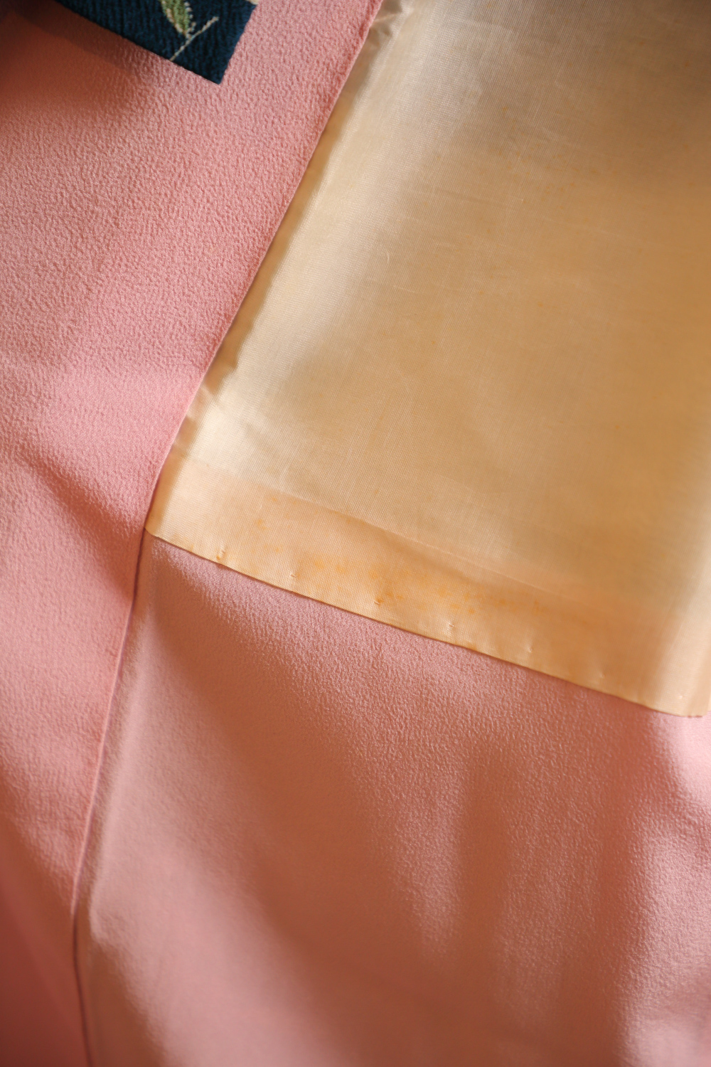Tabin kuntoluokka: 2. Vuorikankaassa on hieman kellastumaa ja vyötärön kohdalla pientä kulumaa. Nämä eivät näy ulospäin kimonoa käytettäessä. Kimonossa ei ole muita havaittavia vikoja, ja se on yleisesti ottaen erittäin hyvässä kunnossa.