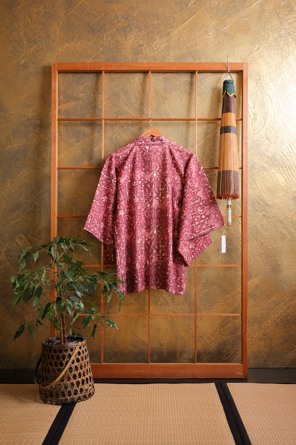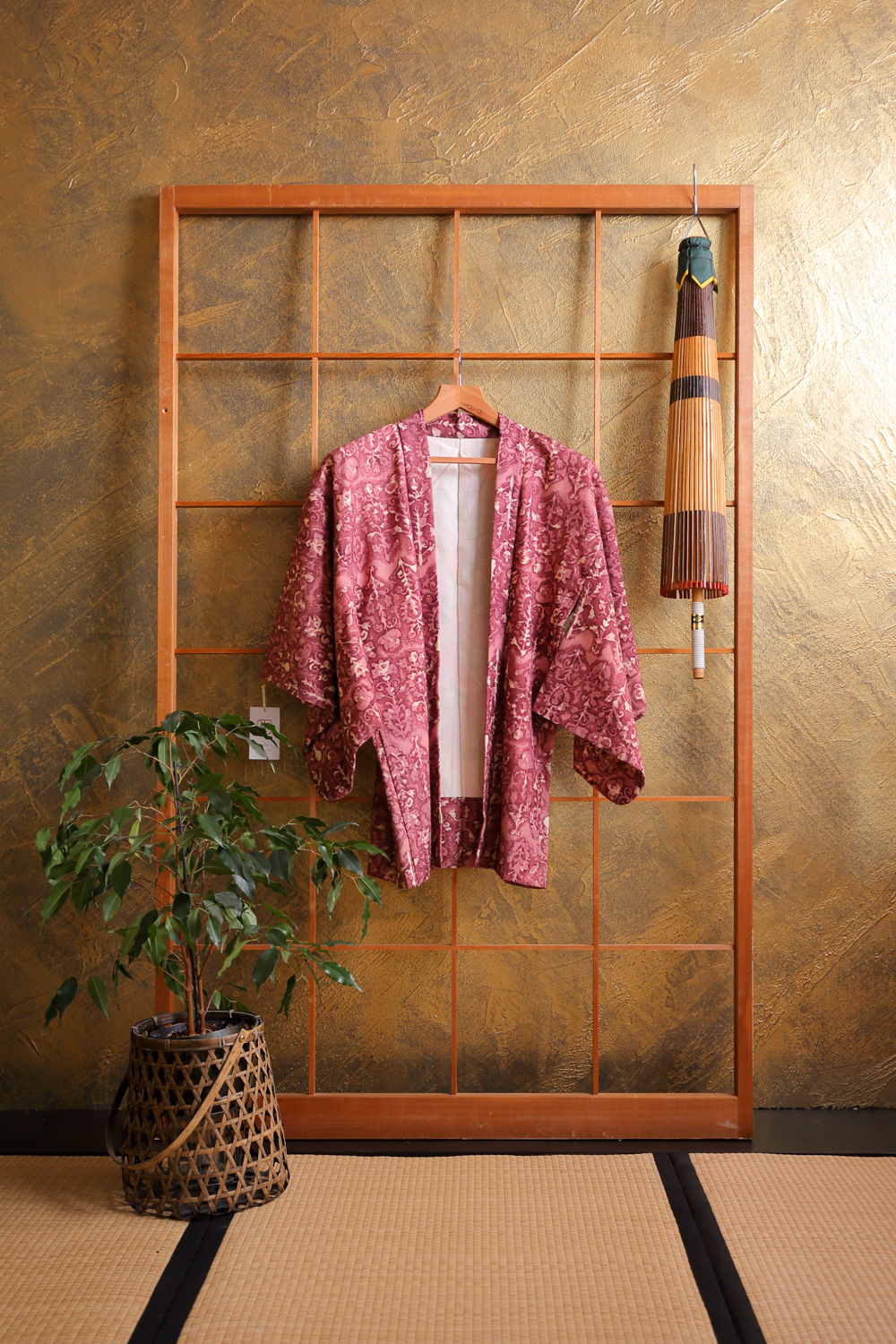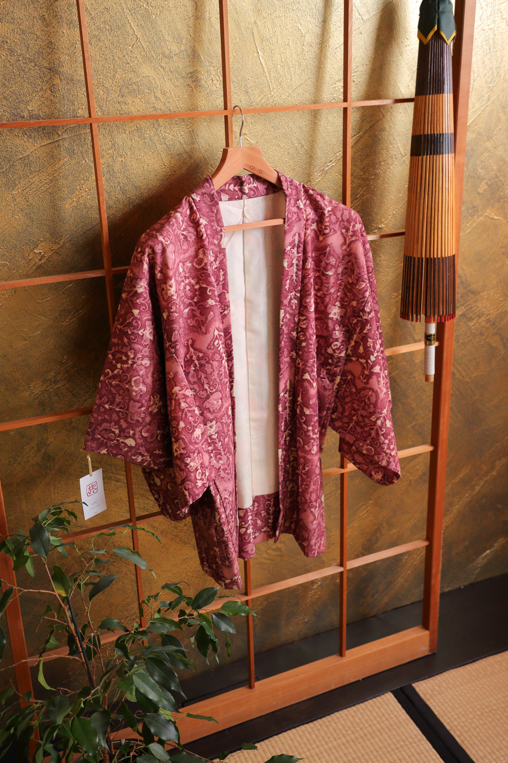 Luumunpunainen haori bambunlehdillä #136